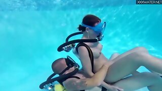 langt ned i halsen, rødhåret, undervand