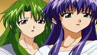 1 man 2 vrouwen, openbaar, lesbisch, grote tepels, anime