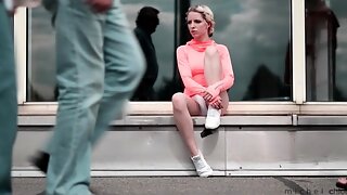 offentlig, utomhus, blinkande, röv, erotisk, kjol