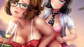 lesbisk, anime, tecknad, 3D